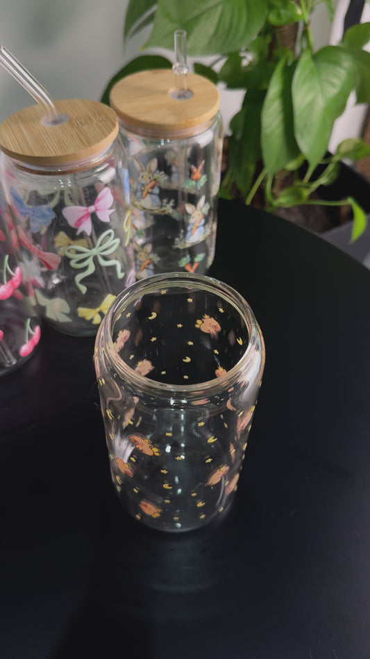 Crafted from high-quality borosilicate glass, this cup features a charming double-sided bunny illustration. Paired with a natural bamboo lid and reusable glass straw, it combines aesthetics with functionality — perfect for enjoying coffee, juice, tea, or any cold beverages.